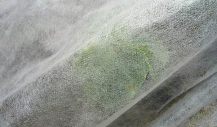 - Можна класти будь-якою стороною. Коли агроволокно нове воно як «накрохмалене», тому перші 1-2 дні вода може стікати з нього, але як тільки воно продується вітром і промокне - агроволокно стане легко пропускати воду.