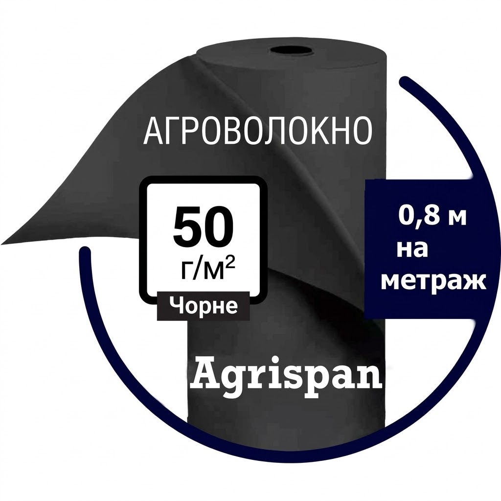 Агроволокно чорне 80 см Агріспан відрізняється високою щільністю 50 г / м.кв, що дозволяє ходити по ньому ногами та не боятися порвати. Підходить для захисту верхнього шару грунту від освіти сухої кірки, не дає рости бур'янам.